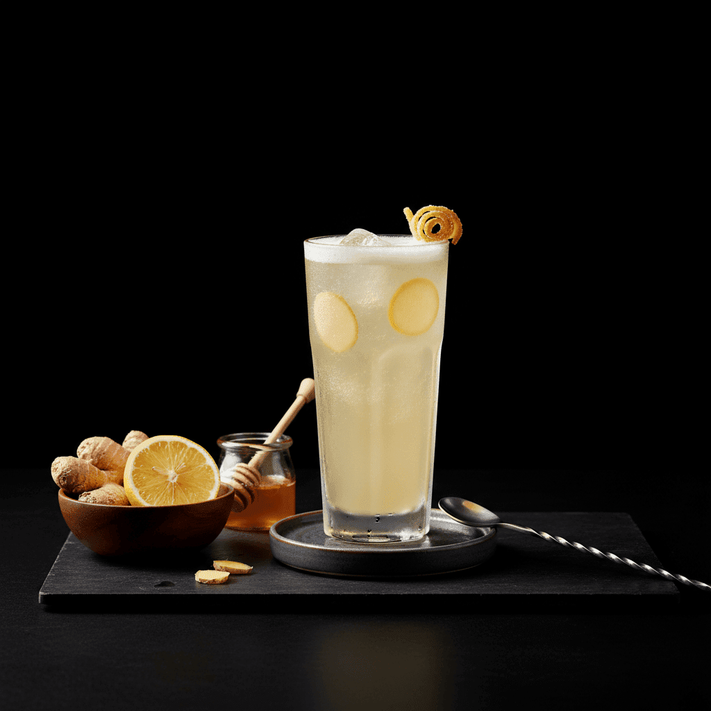 Jengibre fresco, limón, miel y soda.